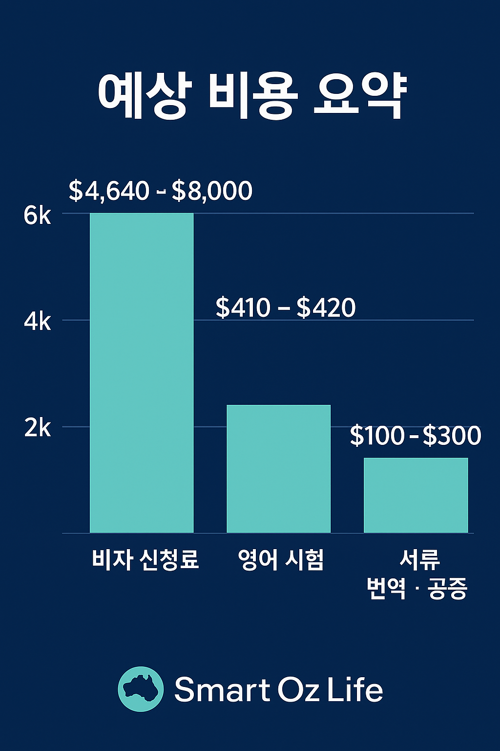 | 비자 신청료 | $4,640 ~ $8,000 | 비자 종류별 상이 |