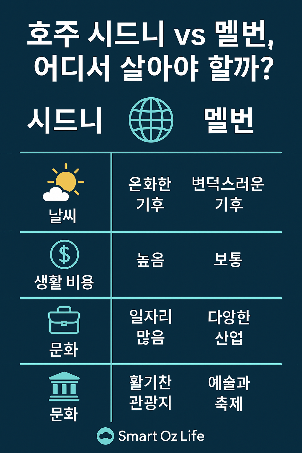 시드니 vs 멜번 한눈에 비교표📊
